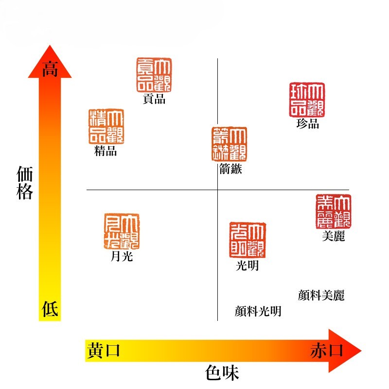 顔料シリーズは低価格版の印泥のため、作品として長く残したい場合は、一般および高級タイプをご使用いただくことをお勧めいたします。
